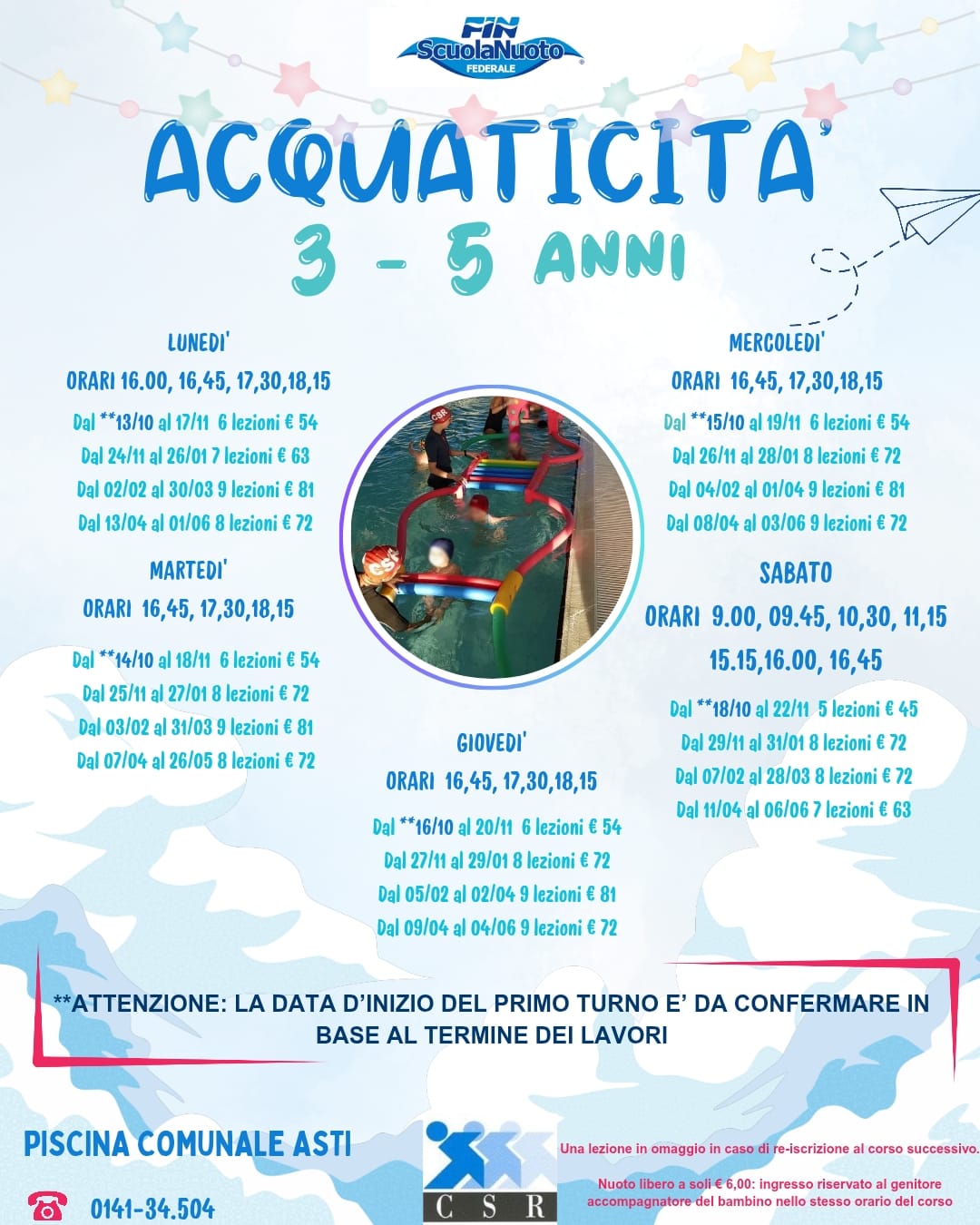 CORSI BAMBINI 3/5 ANNI piscina COPERTA 2025-2026
